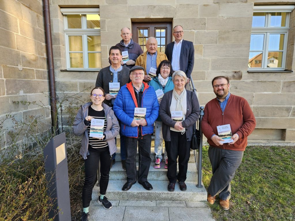 Unsere Autoren für den Heimatboten 2025: Katrin Pasieka-Zapf, Liane Preininger und Käthe Pühl (vorne, Erste, Dritte und Vierte von links) gestalteten drei Autorinnen das Jahrbuch mit. Hinten Mitte: Schriftleiter Robert Schön.